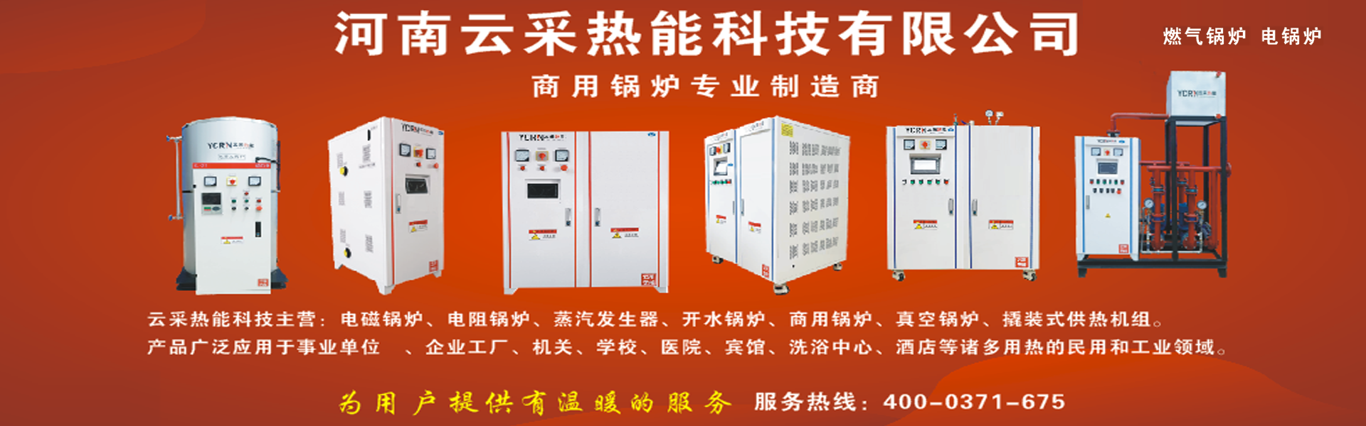 全國服務熱線:400-0371-675 歡迎來到河南云采熱能科技有限公司大卡鍋爐, 電開水鍋爐,電鍋爐,變頻電磁鍋爐,電熱水鍋爐,變頻模塊鍋爐,,蒸汽發生器 云采熱能 ,大卡鍋爐 400-0371-675官網!